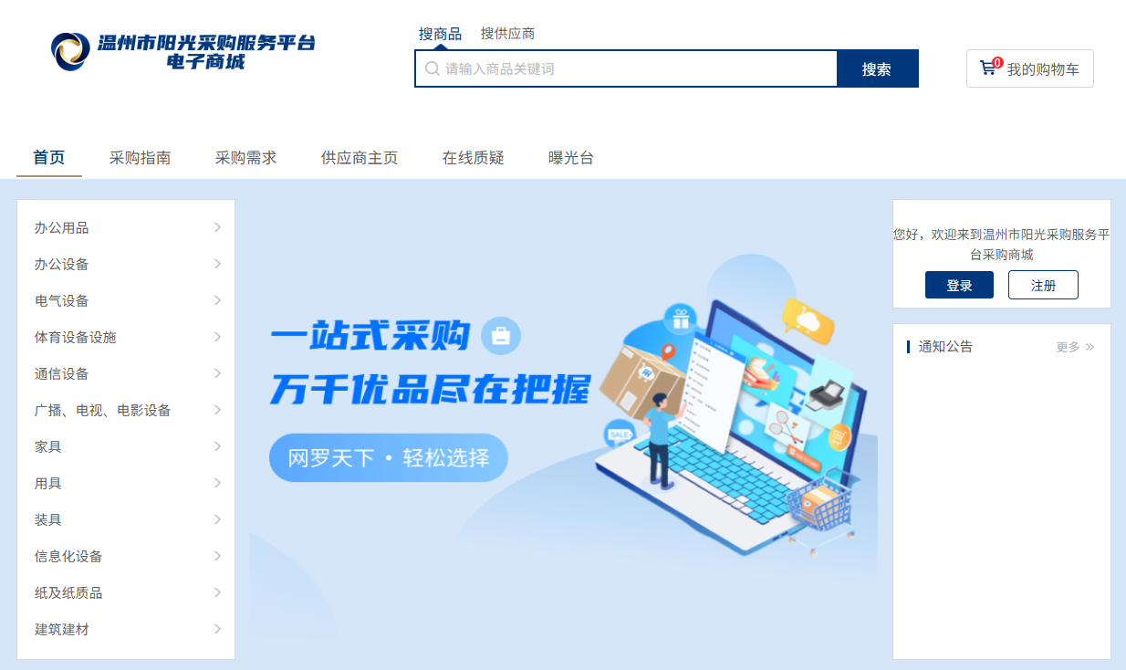 温州市阳光采购服务平台电子商城正式上线!